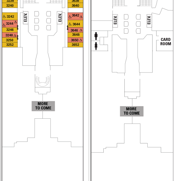 The Grand is billed as a throwback to the luxury liner era. Judging by the render to the left, its rather hard to see it. There are some dark wood elements, especially on the pillars and windows, but I don’t recall a liner that has a bright magenta carpet. I’ll wait to see the final product before starting the real snarky comments. If you want to see how its done, look at sister brand Celebrity and what they did with the Olympic onboard the Millennium.