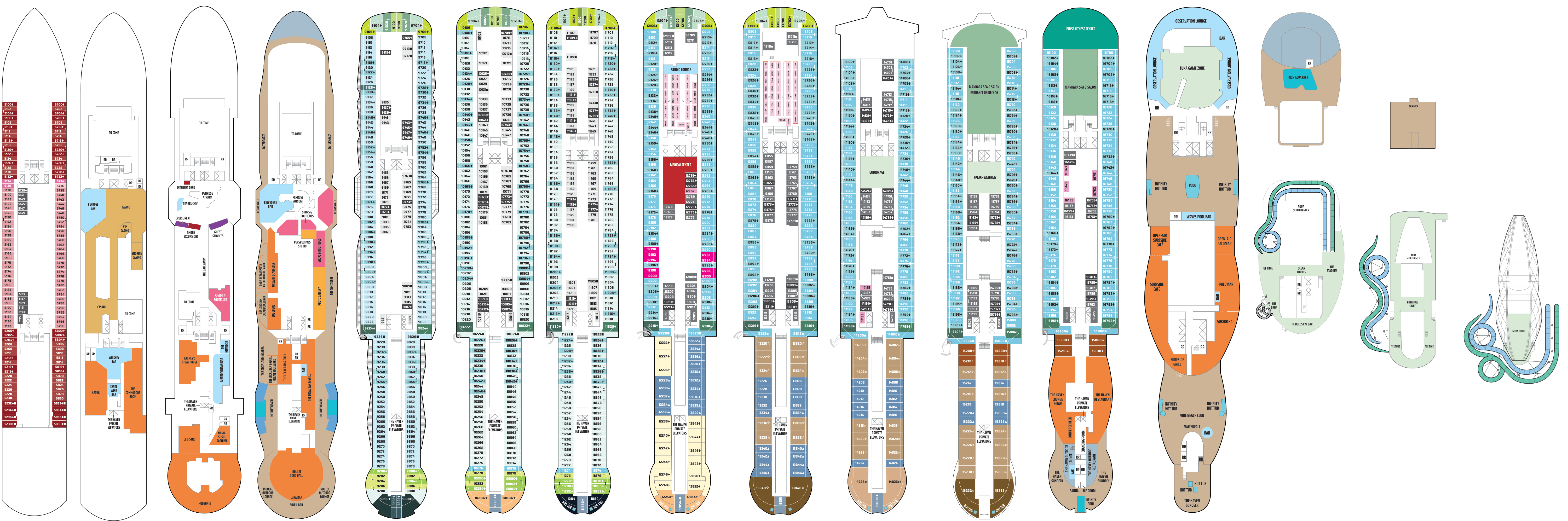 Norwegian Luna is part of Norwegian Cruise Line’s Prima Plus Class. The vessel measures approximately 1,056 feet in length with a beam of around 135 feet and a gross tonnage of roughly 156,300. Designed to carry about 3,550 guests at double occupancy, the ship features expanded outdoor spaces and a higher crew-to-guest ratio in line with the Prima Class design philosophy. Propulsion is provided by a diesel-electric system, incorporating modern emissions-reduction technologies and Azipod propulsion units, delivering an efficient cruising speed consistent with the class. Building on the foundation set by Norwegian Prima and Norwegian Viva, Norwegian Luna includes an evolution of the Ocean Boulevard concept, multiple specialty dining venues, immersive entertainment spaces, and a strong emphasis on upscale, open-air design elements tailored to warm-weather itineraries.